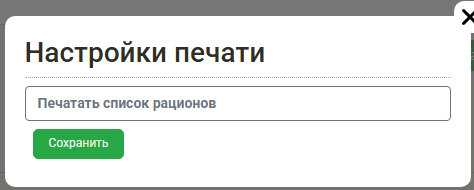Чтобы не печатать Список рационов - нажмите на кнопку "Печатать список рационов":