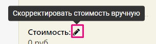 Для введения ручной корректировки цены нажмите значок карандашика справа от Стоимости заказа: