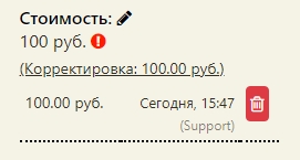 Нажмите зелёный значок галочки, введённая корректировка отобразится в истории и будет пересчитана Стоимость заказа: