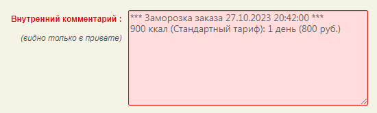 После добавления замороженных дней обратно в заказ необходимо удалить из комментария эту информацию.